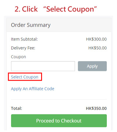 2. Then click "Select Coupon" which under "Apply A Coupon"