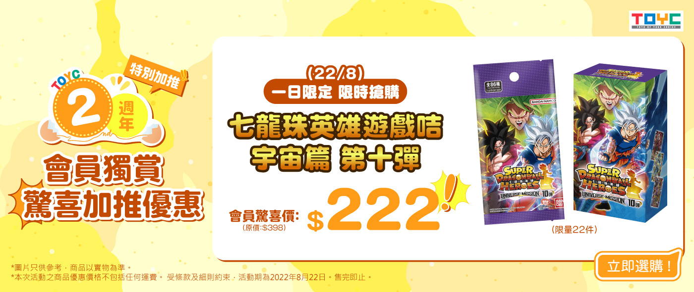 1. TOYC 2週年慶祝活動 驚喜加推活動期由2022年8月22日下午13:00 (UTC+8)至2022年8月22日下午23:59 (UTC+8) 止 (下稱「活動期」)