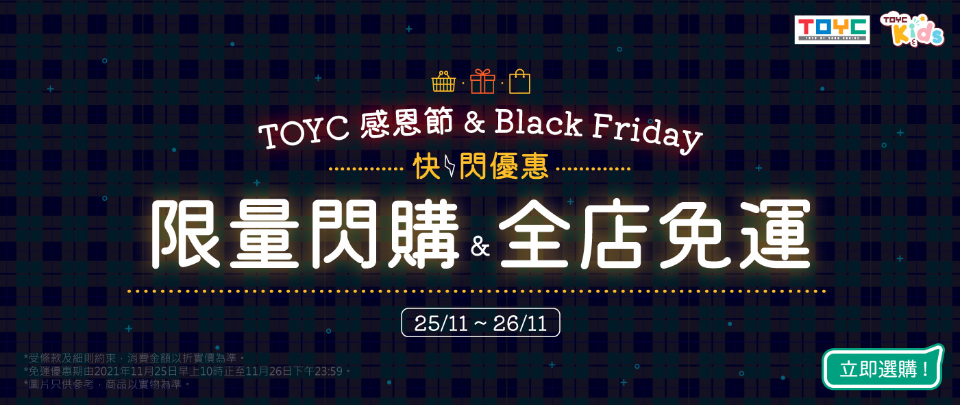 以上Black Friday黑色星五優惠均受條款及細則約束,條款及細則詳情請參考: https://www.toyc.com.hk/pages/2021-toyc-black-friday