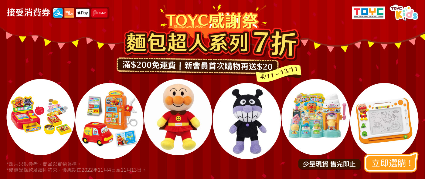 由2022年11月4日至13日,麵包超人指定商品7折發售,少量現售,售完即止。