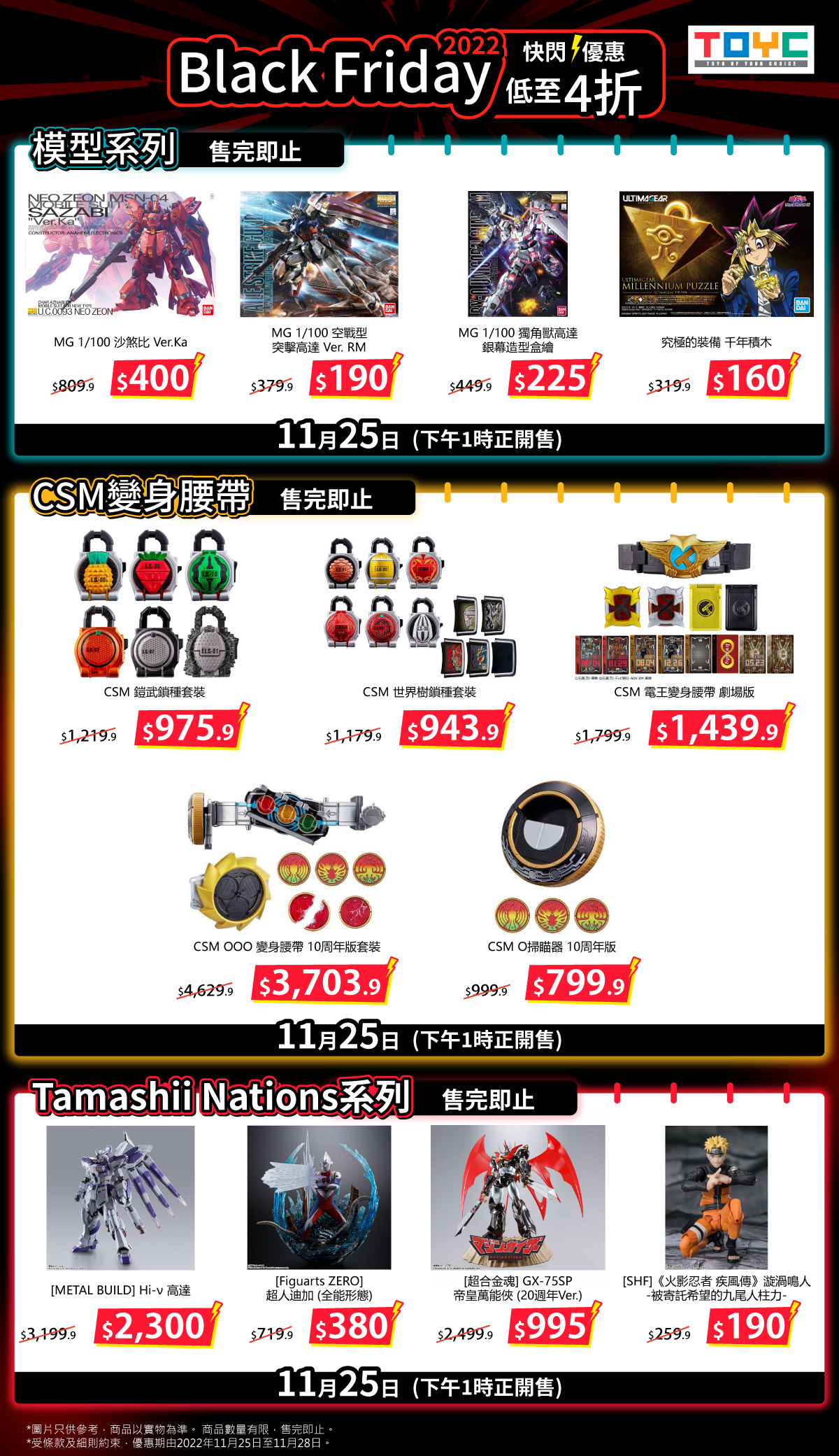 1. 活動期由2022年11月25日上午00:00 (UTC+8) 至商品售完即止。