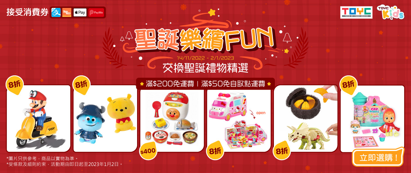 3. 此優惠只適用於TOYC聖誕樂繽FUN活動之指定商品。