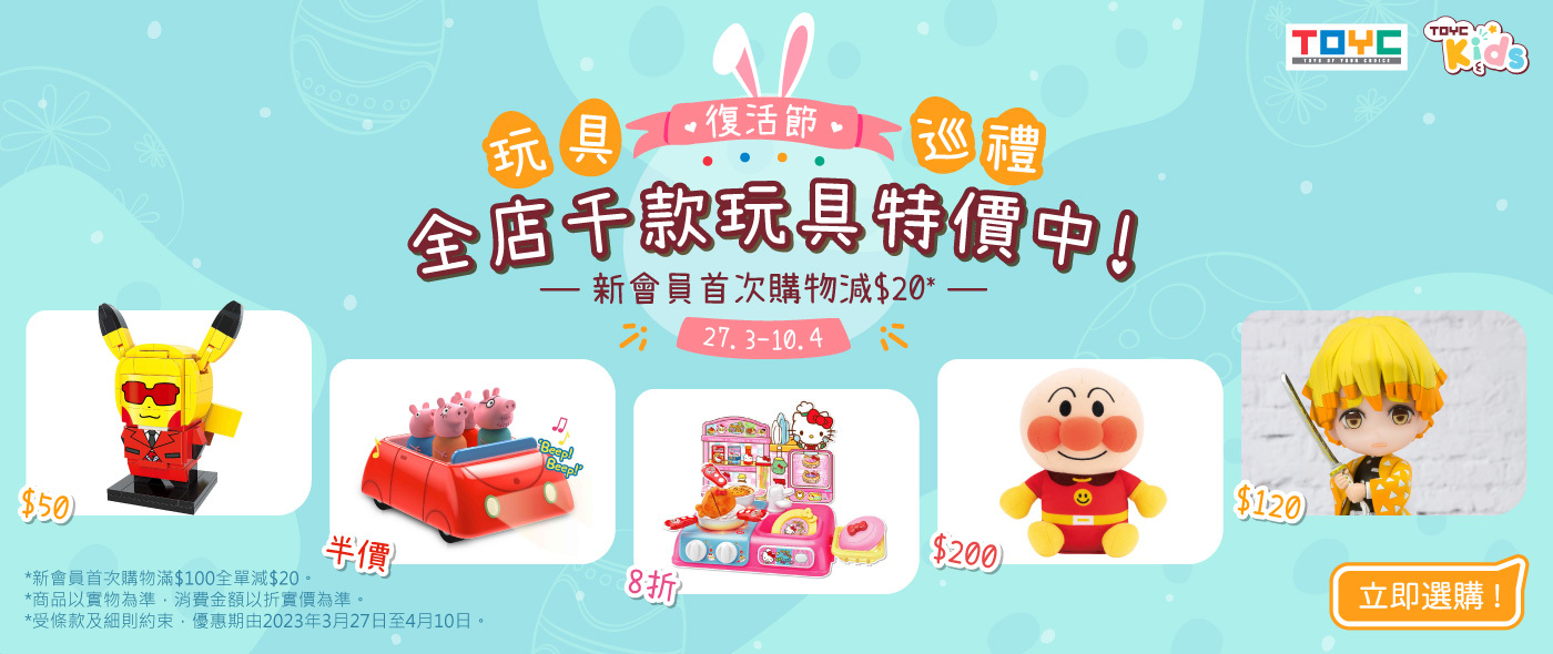 3. 此優惠只適用於TOYC 復活節玩具巡禮之指定商品。