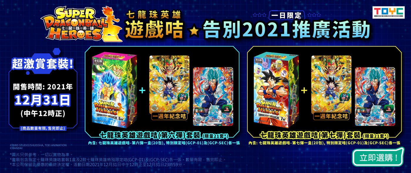 喺今個2021年12月31日,TOYC準備咗兩款七龍珠英雄遊戲咭限量版套裝(共42套)同你一同迎接2022!