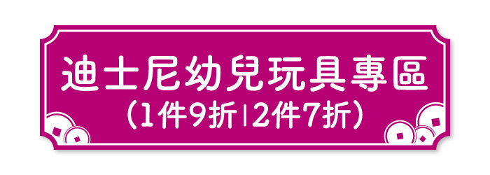 4. 優惠期內迪士尼系列、驚奇漫畫之指定商品8折;其角色扮演用品/玩具類別之指定商品買1件9折,買2件或以上7折;迪士尼系列幼兒/學前玩具類別之指定商品買1件9折,買2件或以上7折。