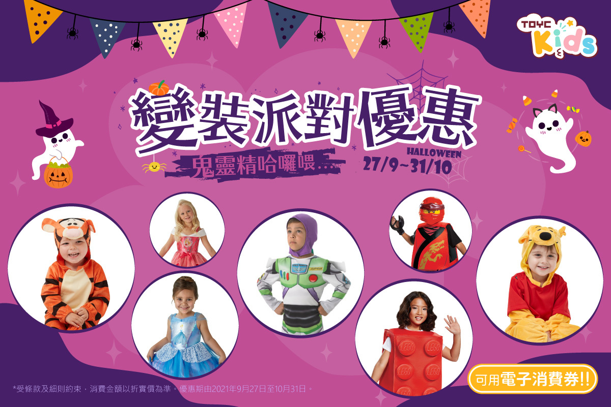 TOYC Kids迎接第一個Halloween,當然要同各位爸爸媽媽、大人細路一齊狂歡啦! 我哋推出「鬼靈精哈囉優惠」,多款公主裙低至HK$100、其他特別造型服裝都係HK$200/$300一套,齊齊化身裝扮達人啦🕷️~