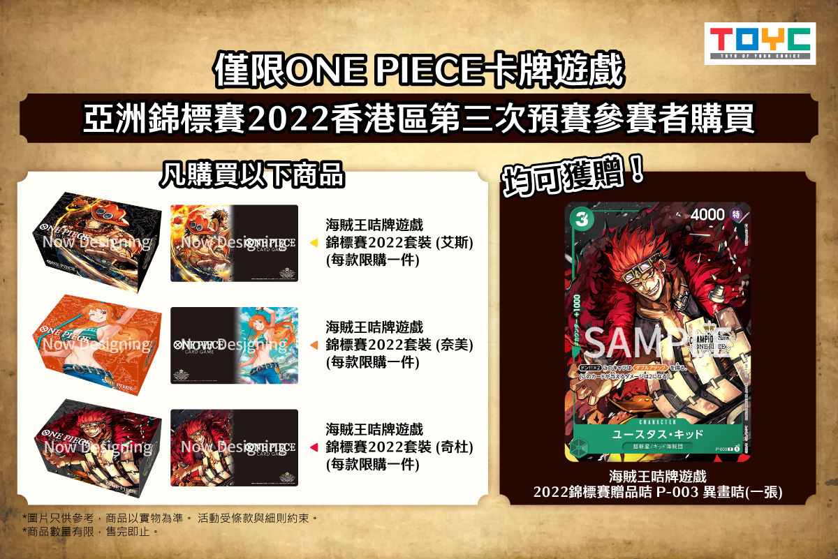均可獲贈「ONE PIECE卡牌遊戲 亞洲錦標賽2022香港區第二次預賽限定商品贈品」一張。贈品數量有限,送完即止。