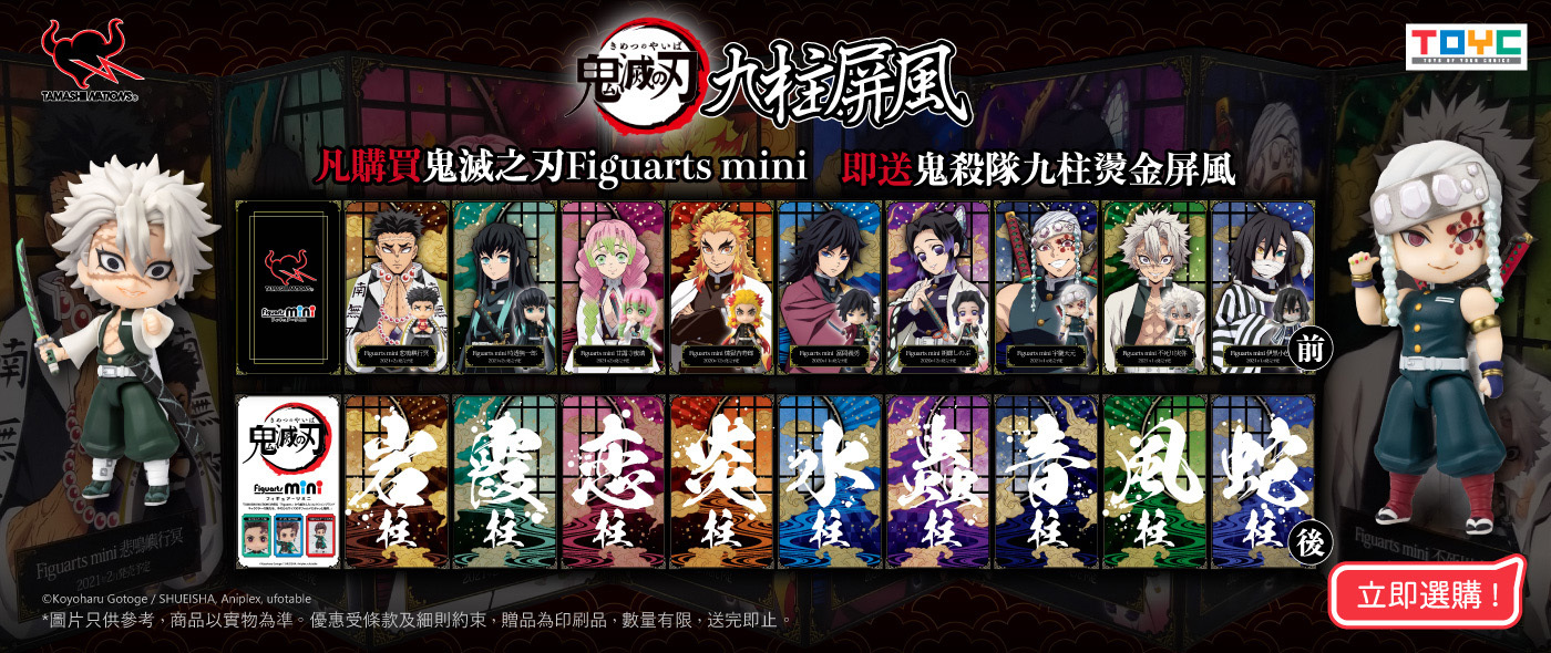 2. 凡購買任何Tamashii Figuarts mini鬼滅之刃產品, 即可獲贈鬼殺隊九柱燙金屏風乙張,贈品數量有限,送完即止。