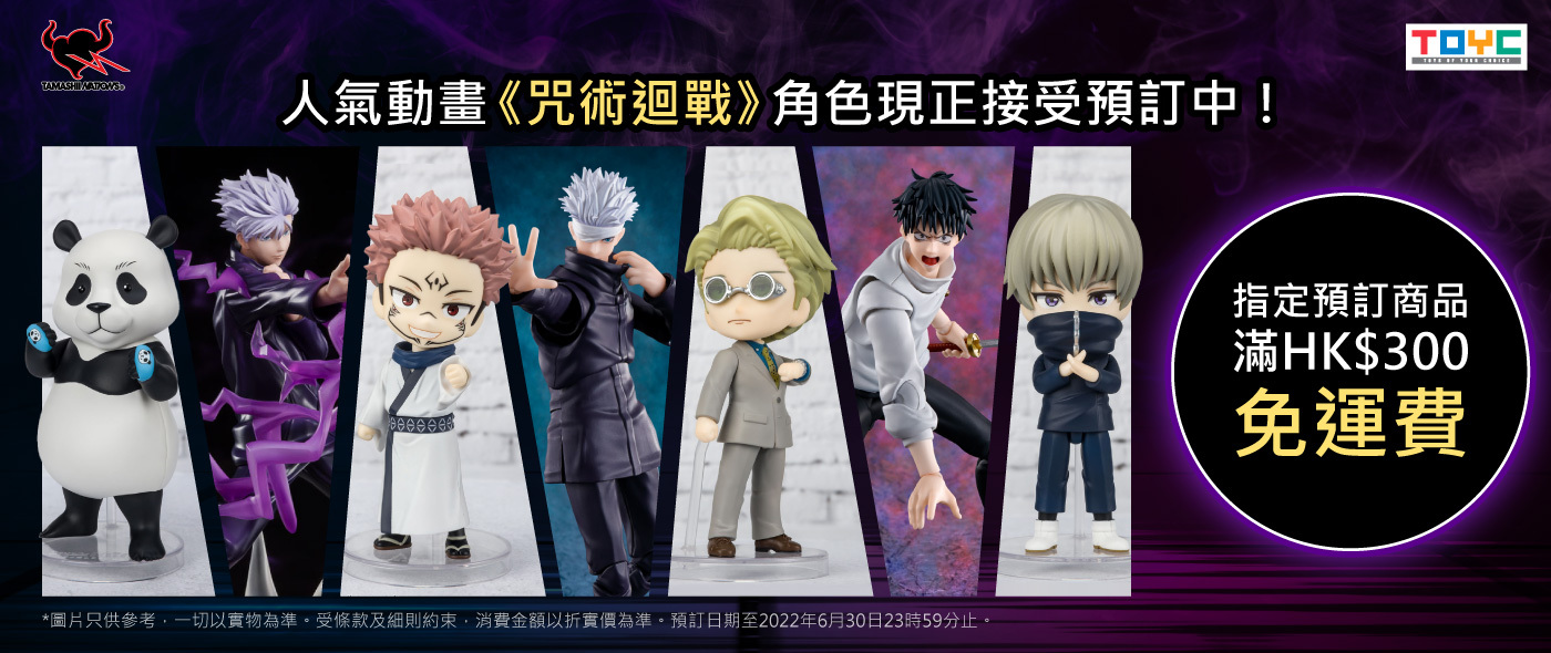 2. *凡預訂指定《咒術迴戰》系列之商品,訂單滿折實價$300可享免運費優惠。