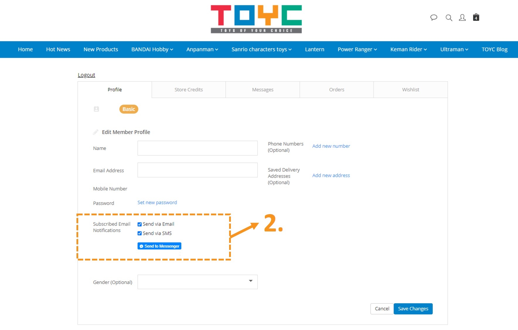 4. If you already selected the box “Send via Email”, but did not receive any Member Exclusive Promotion and new products information. Please consult the TOYC Customer Service.
